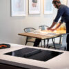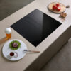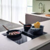 Cele patru zone de gătit, cu funcție Bridge, permit utilizarea vaselor de orice formă. Funcția Booster grăbește procesul de încălzire, iar Temperature Manager menține temperatura setată cu precizie. Hota integrată, cu o capacitate de până la 1200 m³/h, absoarbe eficient aburii, iar Power Limitation reglează consumul în funcție de rețeaua electrică. Dispozitivul include funcții de siguranță precum blocarea pentru copii, pauză și oprire automată.