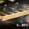 Внутри расположены 4 выдвижные полки из дуба с буковыми решетками, а перегородка обеспечивает грамотное разделение вина по типу. LED-подсветка подчеркивает эстетику содержимого, а стеклянная дверь делает интерьер визуально открытым. Управление осуществляется с помощью кнопочной панели.