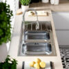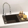 Выдвижной излив позволяет легко мыть посуду, наполнять кастрюли и большие емкости, а также облегчает уход за мойкой.
