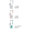 Подключается к водопроводу и фильтру. Прост в установке и уходе.