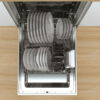 Система загрузочных корзин имеет удобную двухъярусную конструкцию с отдельным контейнером для мойки столовых приборов. Съемные держатели и складные полки помогают разместить до 9 полных комплектов посуды. Благодаря особенностям устройства верхнюю корзину можно поднять выше, что освобождает место для загрузки таких больших предметов как сковороды, кастрюли и секции решеток бытовых варочных поверхностей. Машина может работать как с отдельными реагентами, так и с комбинированными средствами 3-в-1.