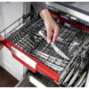 В наших посудомоечных машинах можно легко и удобно отрегулировать высоту верхней (или средней) корзины, не убирая ее с реек. Вы можете ее отрегулировать, даже когда она загружена.