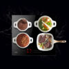 автоматически объединяет две зоны нагрева при использовании посуды большего размера