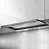Корпус из нержавеющей стали с защитой от отпечатков пальцев и элегантный стеклянный козырек придают вытяжке изысканный вид. Три скорости работы управляются с помощью удобного слайдера. Работает как в режиме отвода воздуха, так и в рециркуляции (опциональный угольный фильтр).