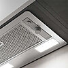 Жироулавливающий фильтр выполнен из алюминия и подходит для мытья в посудомоечной машине. Угольный фильтр доступен опционально (тип CFC0141571), что позволяет использовать модель в режиме рециркуляции. Высокая производительность до 850 м³/ч обеспечивает эффективную очистку воздуха даже при интенсивном приготовлении пищи.