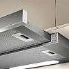 Модель оснащена сенсорным управлением с 3 стандартными и 1 интенсивной скоростью. Может работать в режиме отвода или рециркуляции воздуха (угольный фильтр приобретается отдельно). Таймер и индикатор насыщения фильтра повышают удобство использования. Освещение осуществляется двумя светодиодными лампами по 2.5 Вт. Алюминиевый фильтр легко снимается и может быть вымыт в посудомоечной машине.