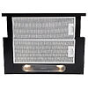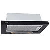 Прибор включается путем выдвижения передней панели. Простые кнопочные переключатели гарантируют удобное управление тремя скоростями вытяжки и включением/выключением освещения. Алюминиевый фильтр пригоден для мытья в посудомоечной машине. Модель может работать в режимах отвода и рециркуляции (угольный фильтр для работы в режиме рециркуляции должен быть приобретен отдельно). Две яркие галогенные лампы станут полноценным источником освещения рабочей поверхности.